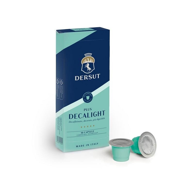 A Dersut Decalight kávékeverék egy speciális eljáráson megy keresztül, mely során viaszmentesítik a kávészemeket, valamint a koffeint is kivonják belőle, így egy sokkal lágyabb, könnyebben emészthető, gyomorkímélő kávét kapunk. Az eljárás során a kávé megőrzi érzékszervi tulajdonságait, aromáját, illatát. A Decalight a Dersut Caffè kizárólagos terméke - bejegyzett védjegy. A doboz 10 darab kávékapszulát tartalmaz.